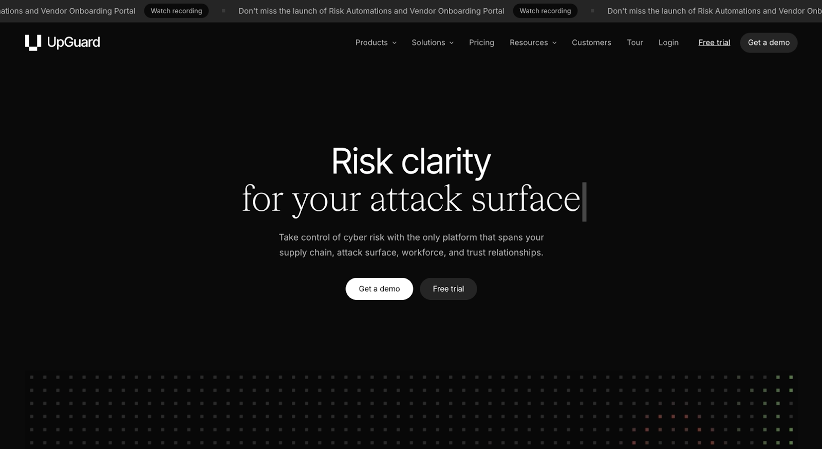 UpGuard’s homepage uses a stark black-and-white color contrast and concise copy like “Risk clarity for your attack surface” to establish credibility and professionalism. Cyber security is a serious topic, so this website opts for straightforward visuals and to-the-point explanations of features and benefits. And there’s an emphasis on social proof, with the largest images on the page leading visitors toward detailed customer case studies.